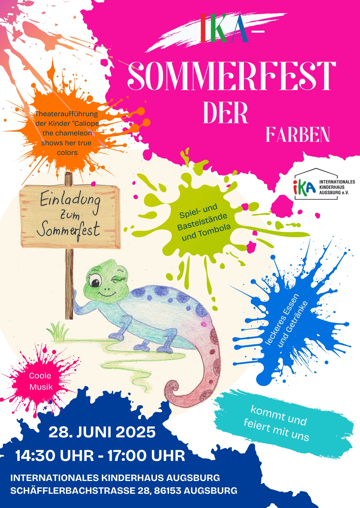 Es ist wieder Zeit zum Feiern: am Samstag, 28.06.2025 von 14:30 bis 17:00 Uhr findet unser diesjähriges Sommerfest statt. Wir feiern ein Fest der Farben. Wie immer gibt es verschiedene Spielstände, Musik sowie Essen und Getränke.